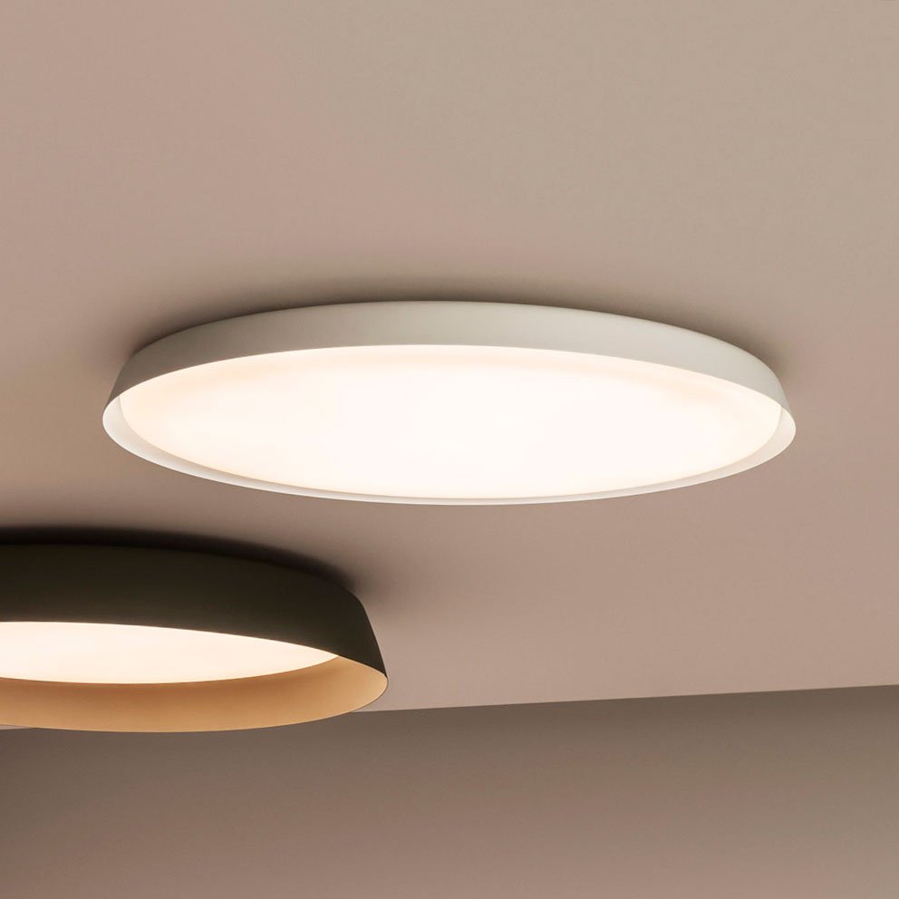 Las lámparas de techo Bigger ofrecen un efecto de iluminación que imita la luz natural, bañando el espacio circundante con una luz descendente difusa y agradable.