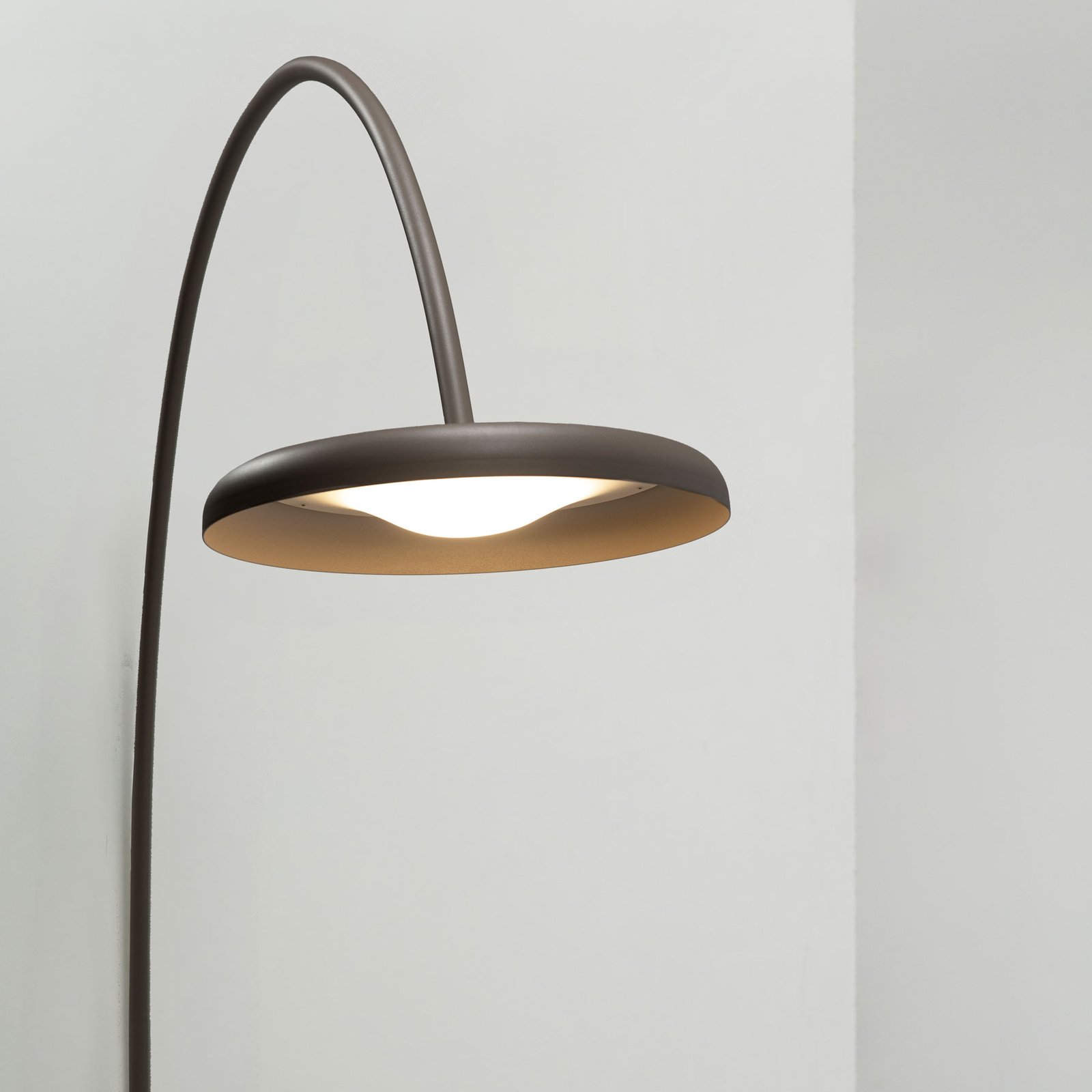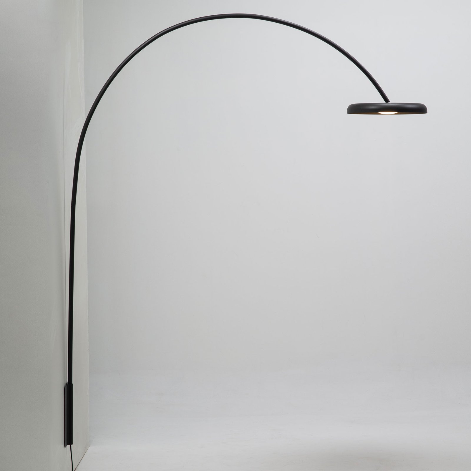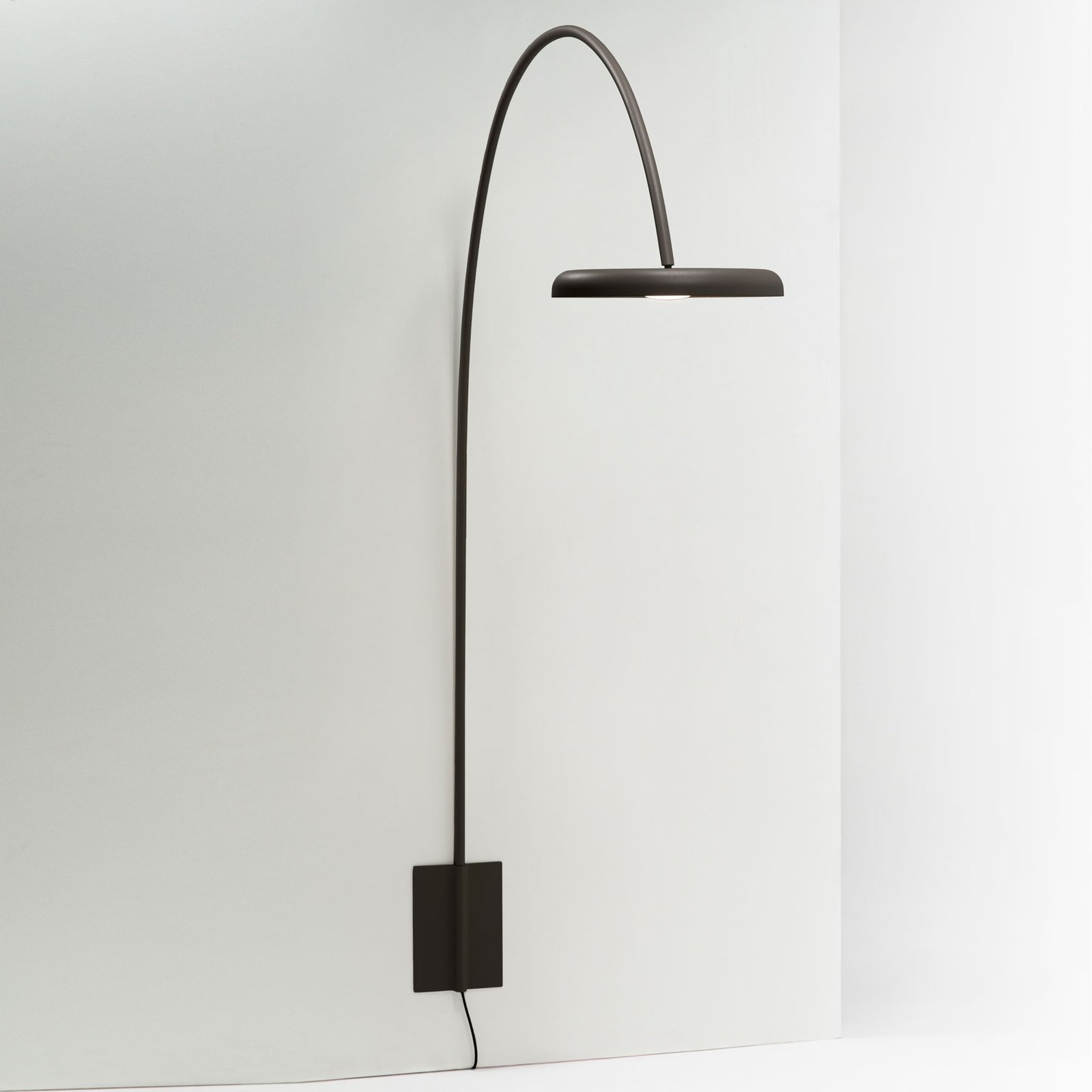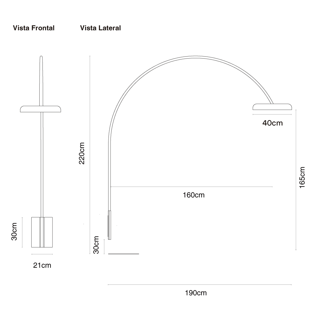 Aplique arco de luz directa, cuerpo en aluminio y difusor de metacrilato esmerilado.
