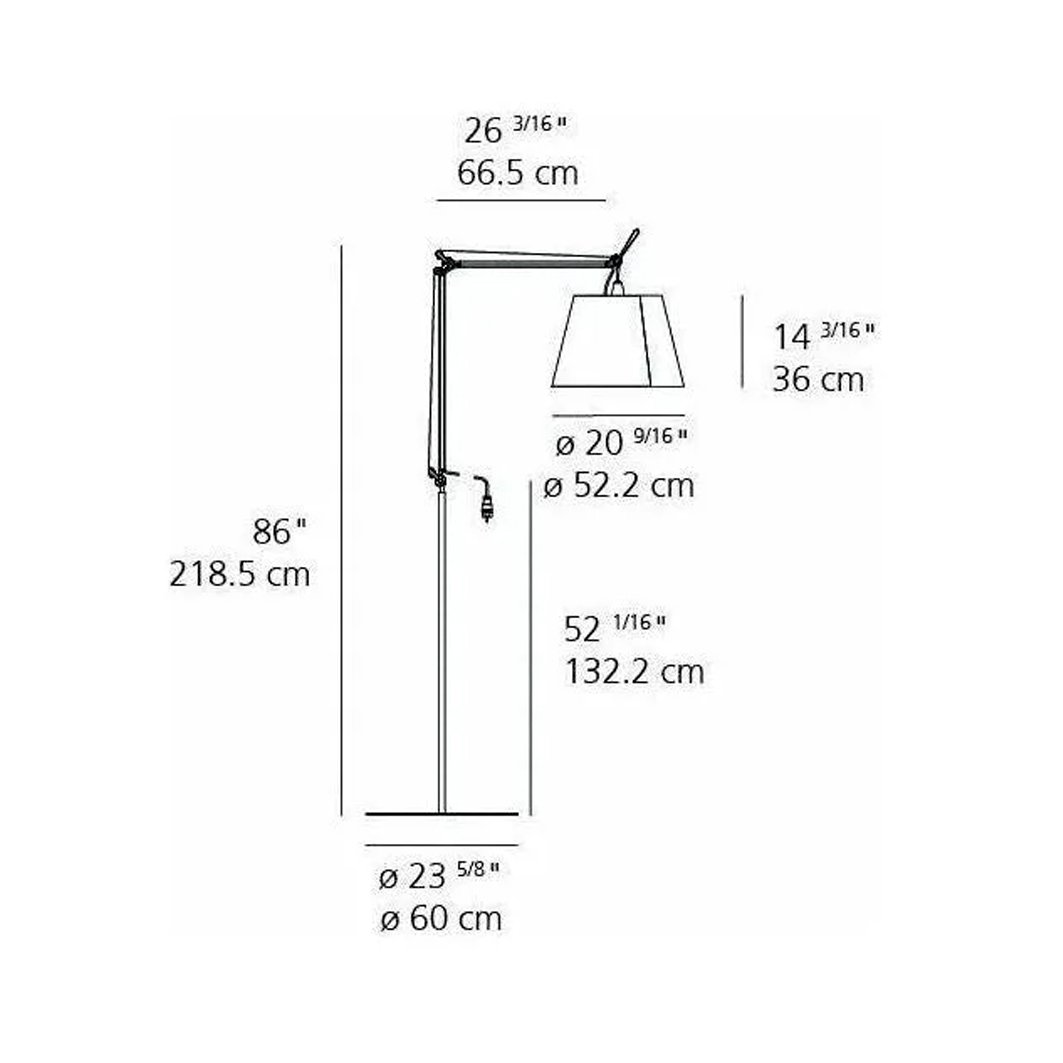 Lámpara de pie italiana de luz difusa orientable dimerizable.