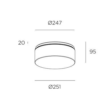 Plafón de luz difusa con pantalla de vidrio. Led integrado dimerizable y protección Ip44.